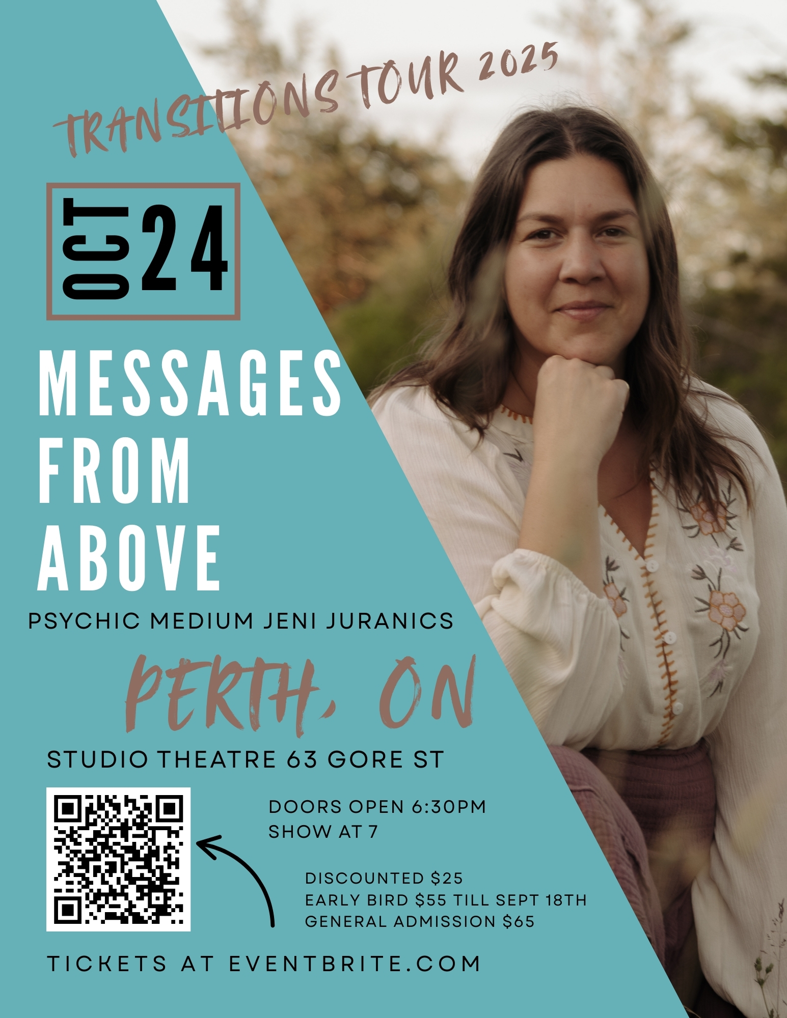 Join Psychic Medium Jeni Juranics for a magical evening of Spirit Communication at Studio Theatre Perth Oct 24th.