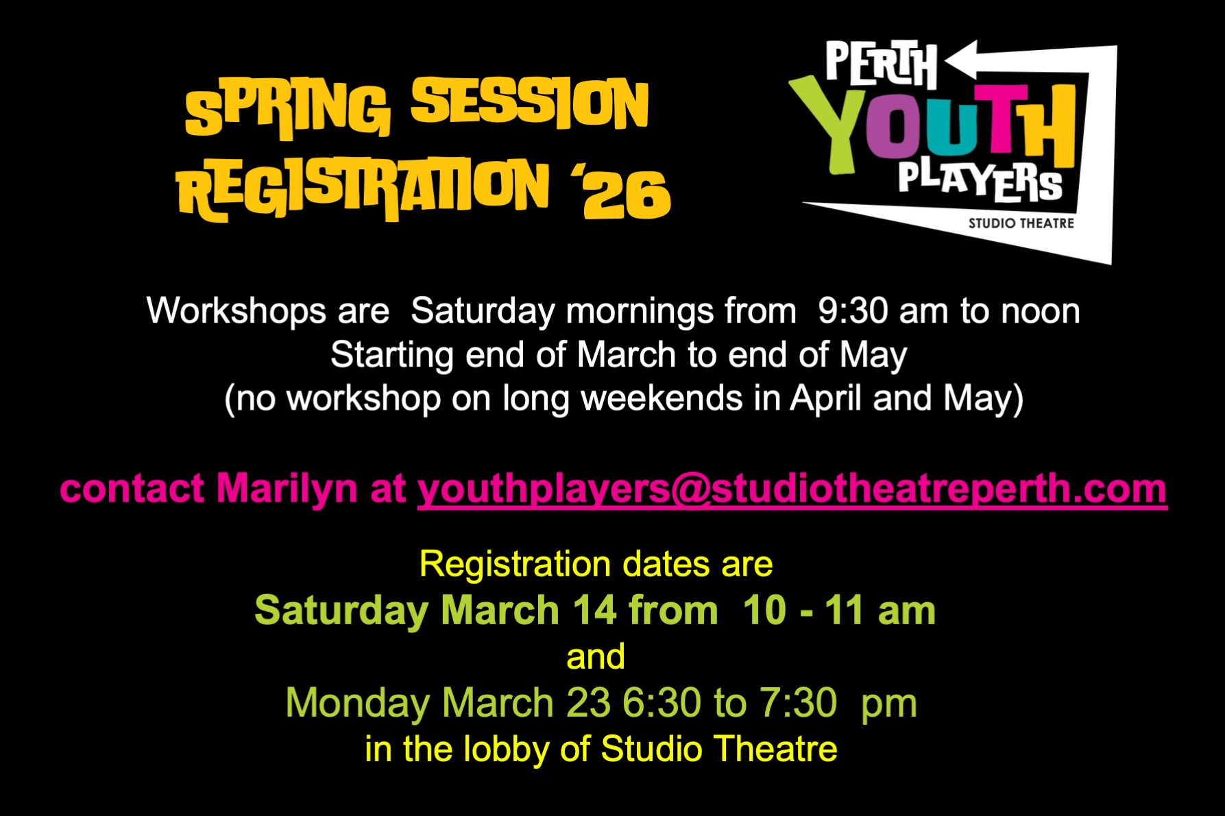 * Please note the Studio Theatre website is the only accurate and reliable source of date and ticket information regarding our shows.